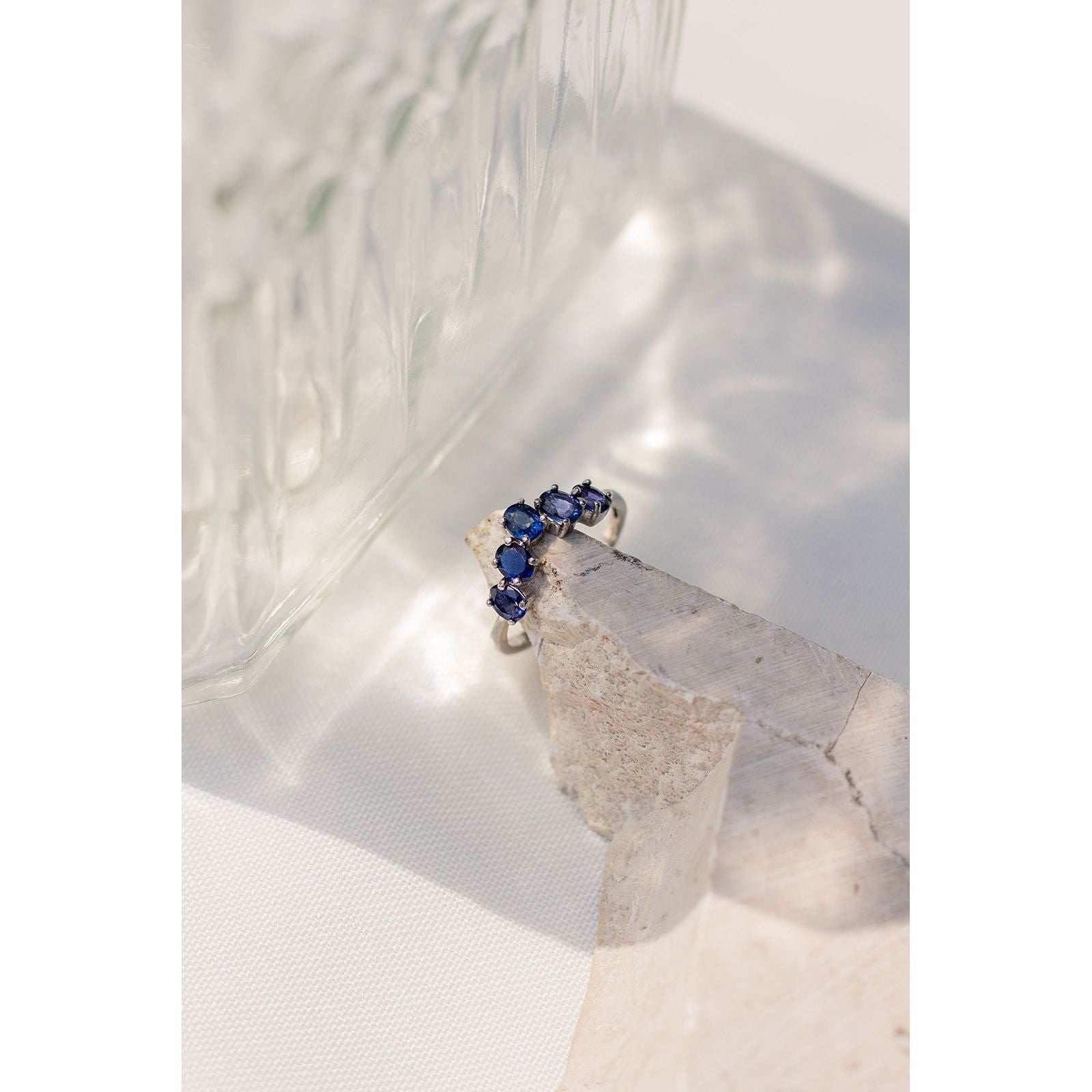 Seis zafiros azules en corte oval.